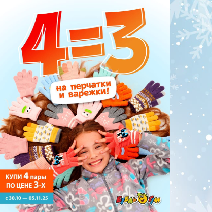 Акция 4=3 на перчатки и варежки